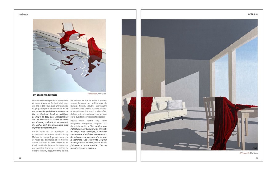 Formé à l'Ecole Boulle en architecture intérieure, Patrick Perrin capture avec sa peinture un moment, un instant de luminosité .